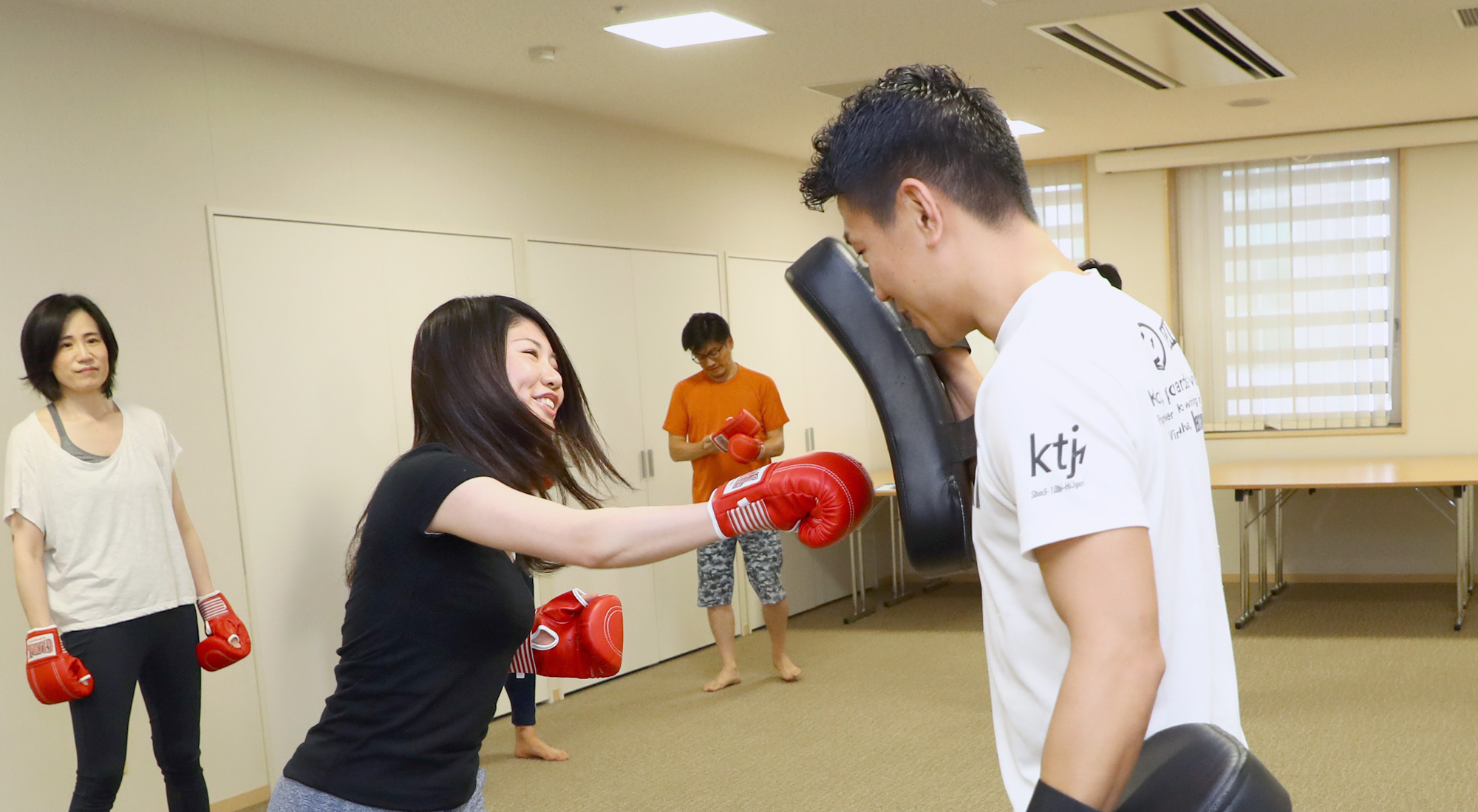 「BOOST アクティブ」は社内で、自由な時間にスポーツするプログラムです。例えば会議室など、ある程度の広さがあればどこでもできます。年齢、性別、役職問わず、就業後、社員の皆さんが集まって、一流のインストラクターから様々なスポーツのレッスンを受けることができます。