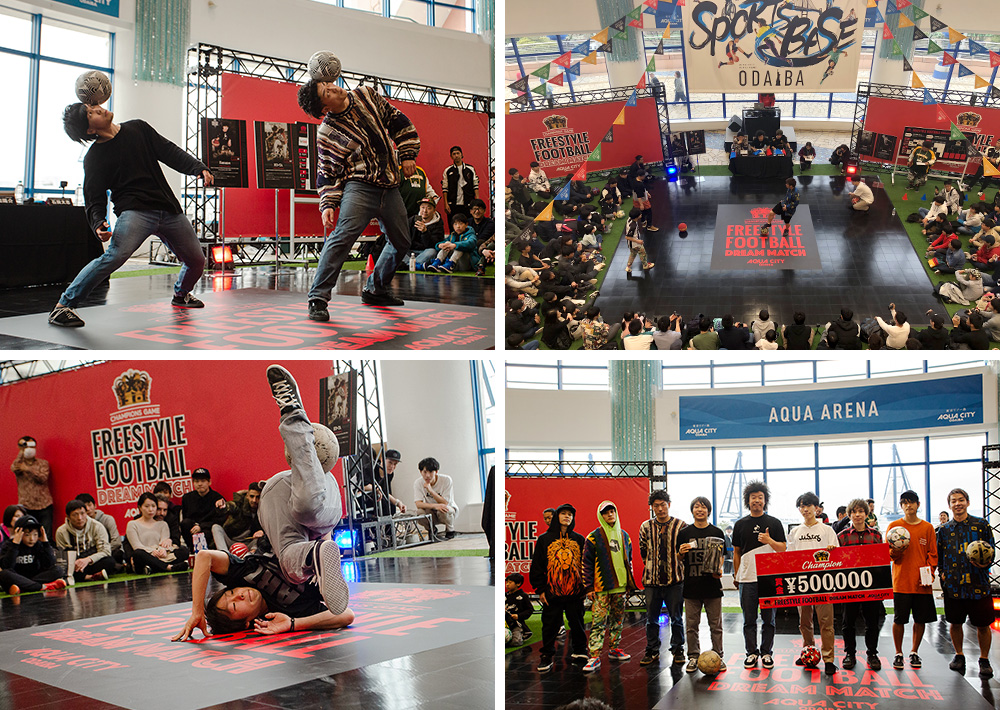 フリースタイルフットボーラーの日本タイトル保持者だけで競う史上初のイベント。“TOKYO RESORT SPORTS BASE 2019”の一環として、アクアシティお台場 3F アクアアリーナで開催。