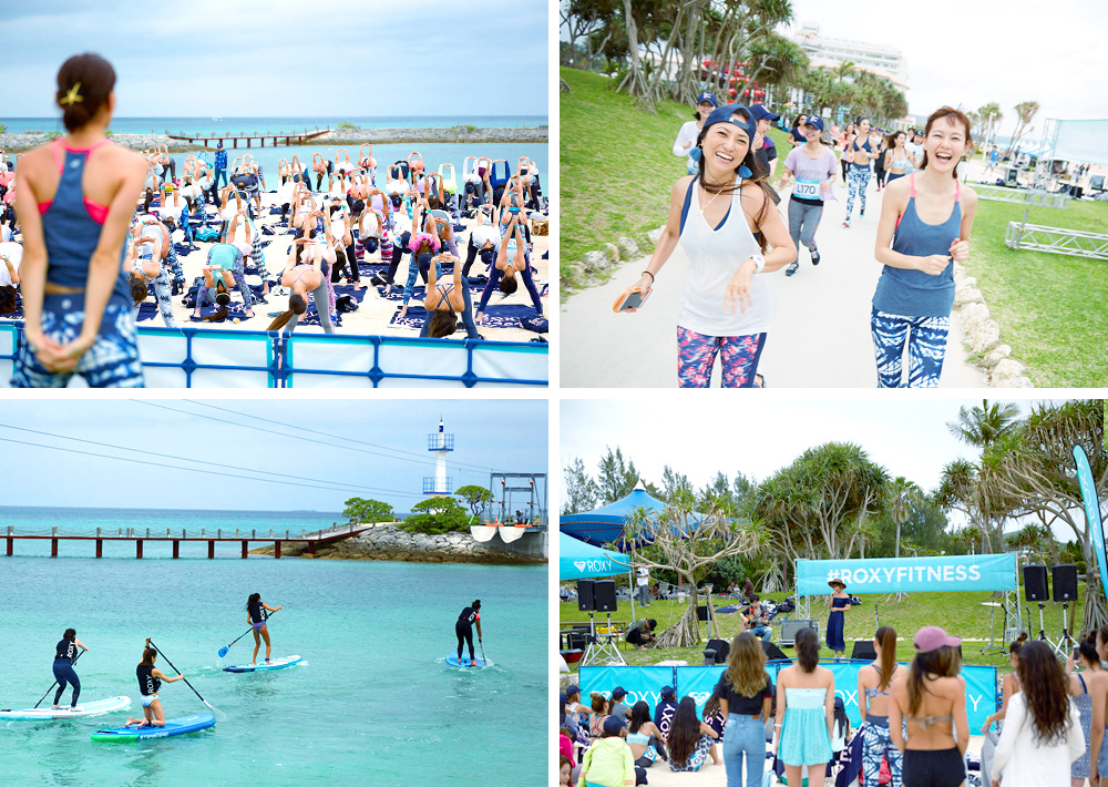 ビーチカルチャーとアクティブライフスタイルを愛する女性のためのブランド「ROXY」が主催するランニング、サップ、ヨガをしてビーチ遊びを楽しもうというイベント。シェラトン沖縄サンマリーナリゾートでの開催を皮切りに横浜、福岡、大阪で開催予定。