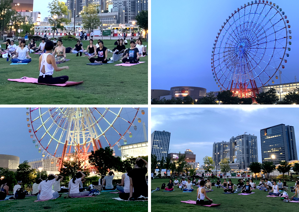 夏の夜空の下で時間を忘れてゆっくりと楽しむ「スターライトヨガ」。夕焼けから夜空に変わっていくトワイライトタイムのお台場で、ゆっくりとした時間を楽しめるヨガイベント。