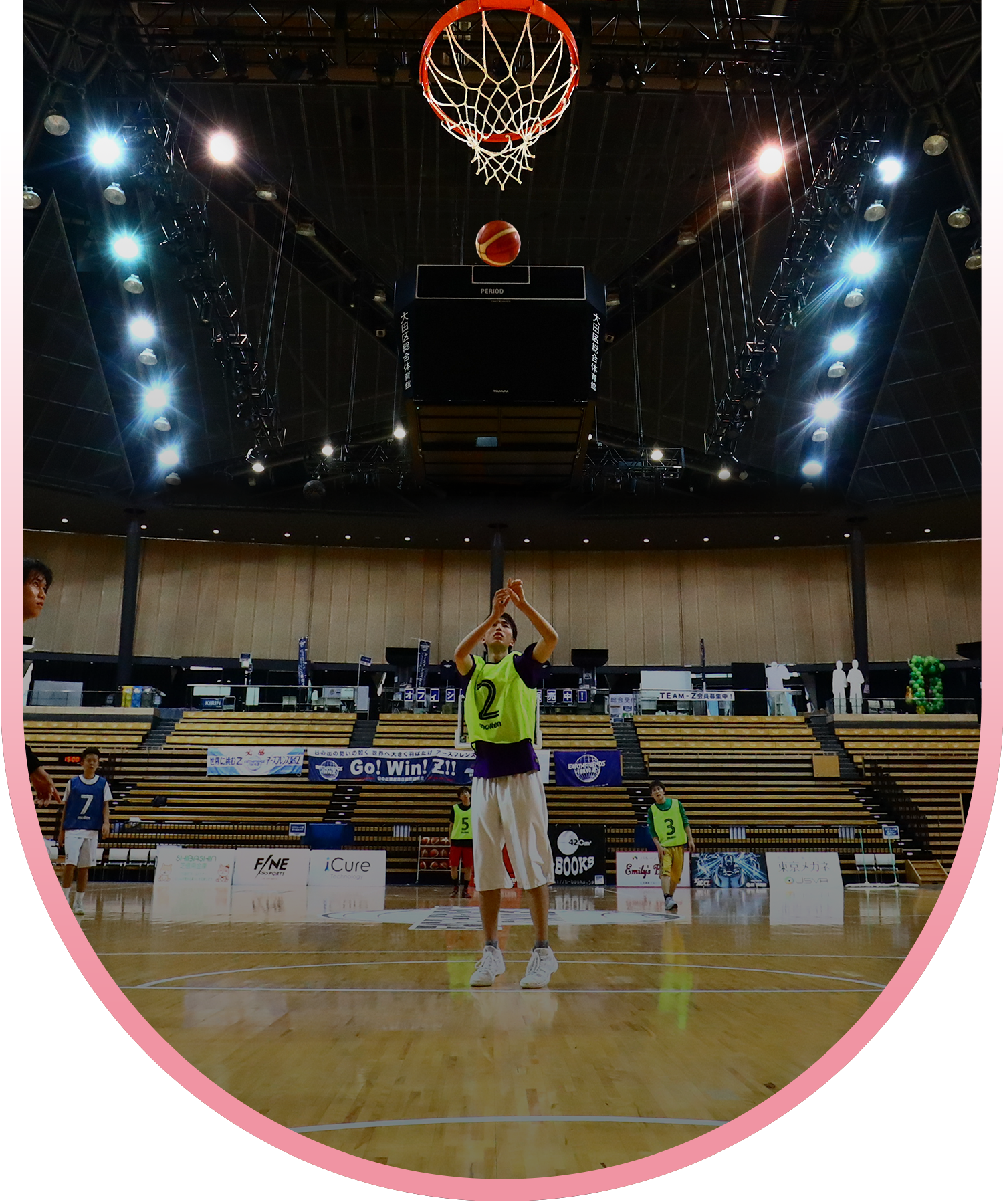 1チーム5名がフリースローを行い、どちらが多く決める事が出来るかを競う。