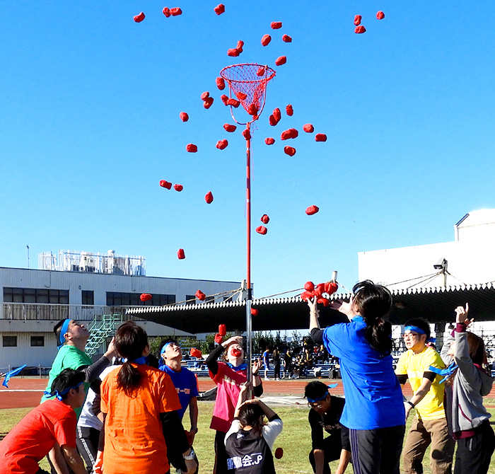 大縄跳び、綱引き、玉入れ、ドッチボール、リレーなど